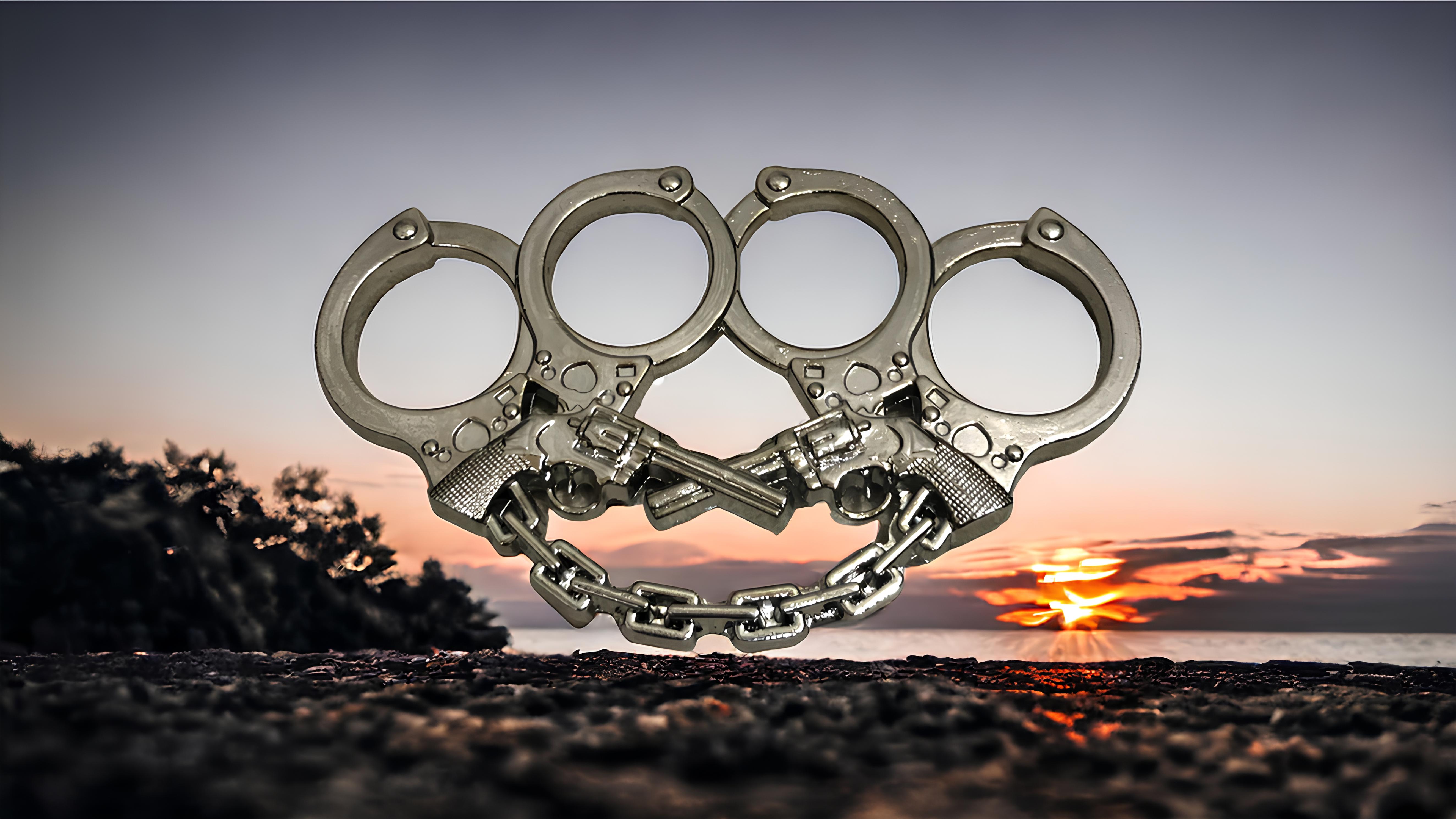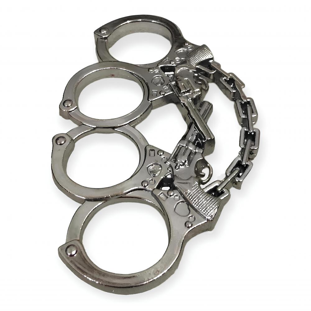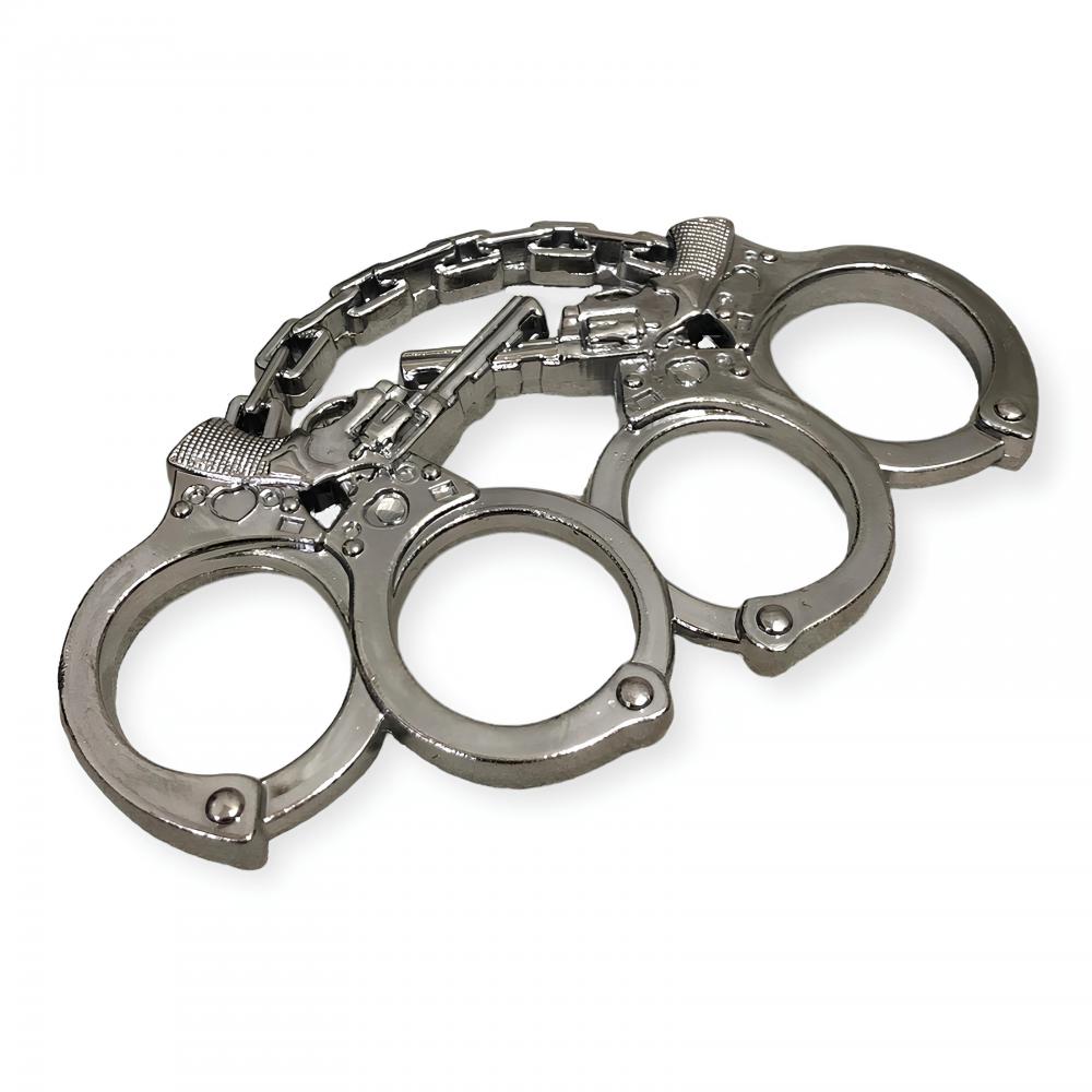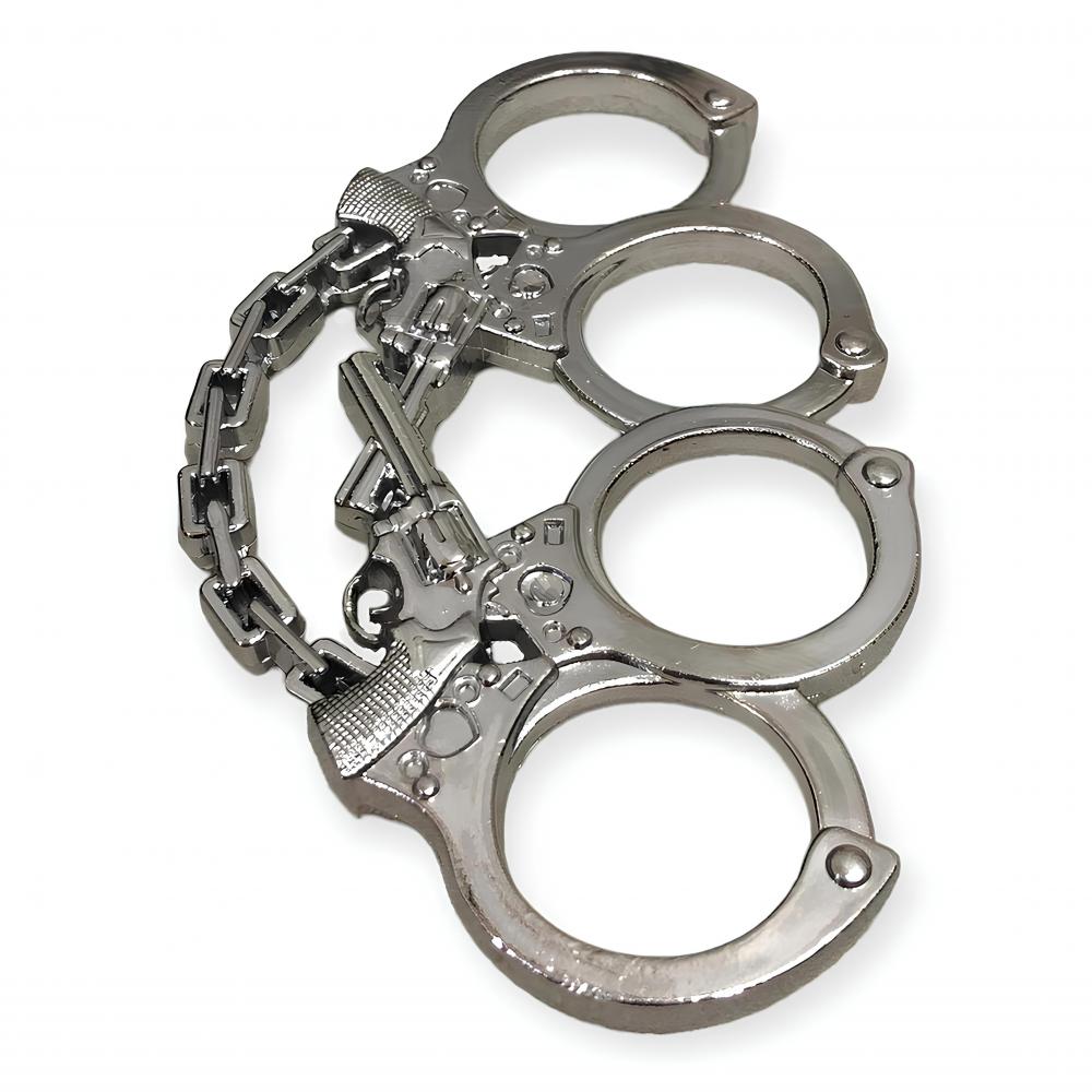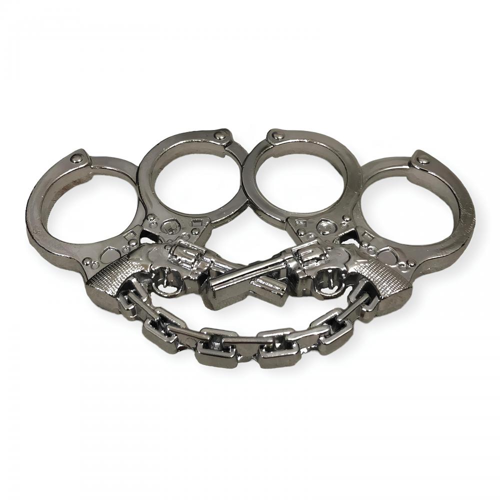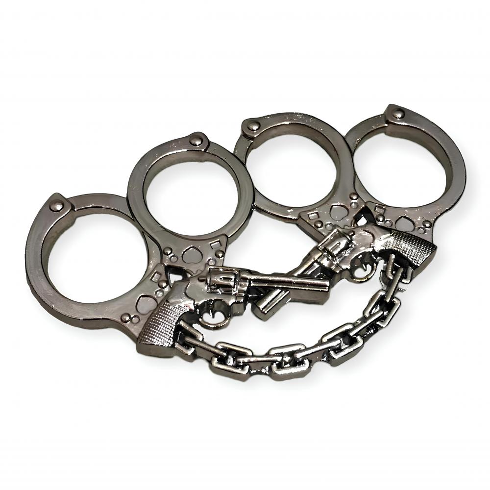 Kelepçe ve Silah Motifli Gümüş Rengi Muşta